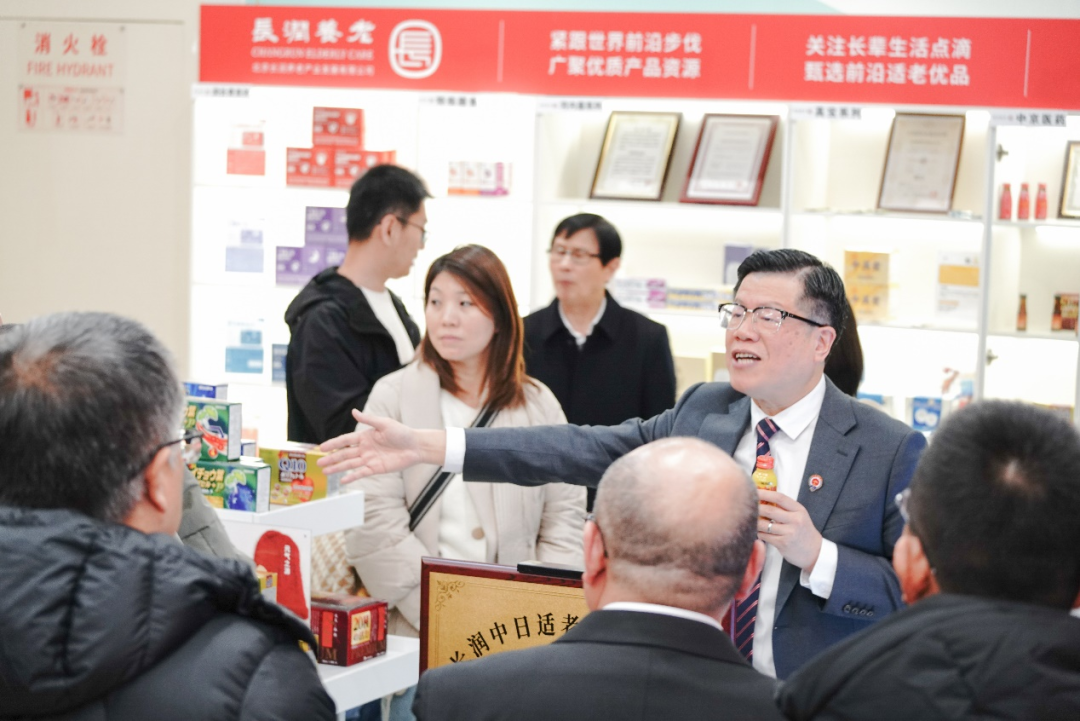 11 点 40分,授牌仪式结束以后,新产品体验环节精彩上演。庄文德董事长亲自介绍日本进口的先进适老产品,这些产品融合了日本在养老领域的先进技术与设计理念,旨在为老年人提供更加便捷、舒适、安全的生活辅助;庄之麟总经理随后对润长青新品进行了详细解读,展示了长润养老在产品研发与创新方面的不懈努力与卓越成果,引发了嘉宾们对长润养老产品的浓厚兴趣。嘉宾们饶有兴致地品尝各类养老产品,亲身感受长润养老产品的独特魅力与品质。