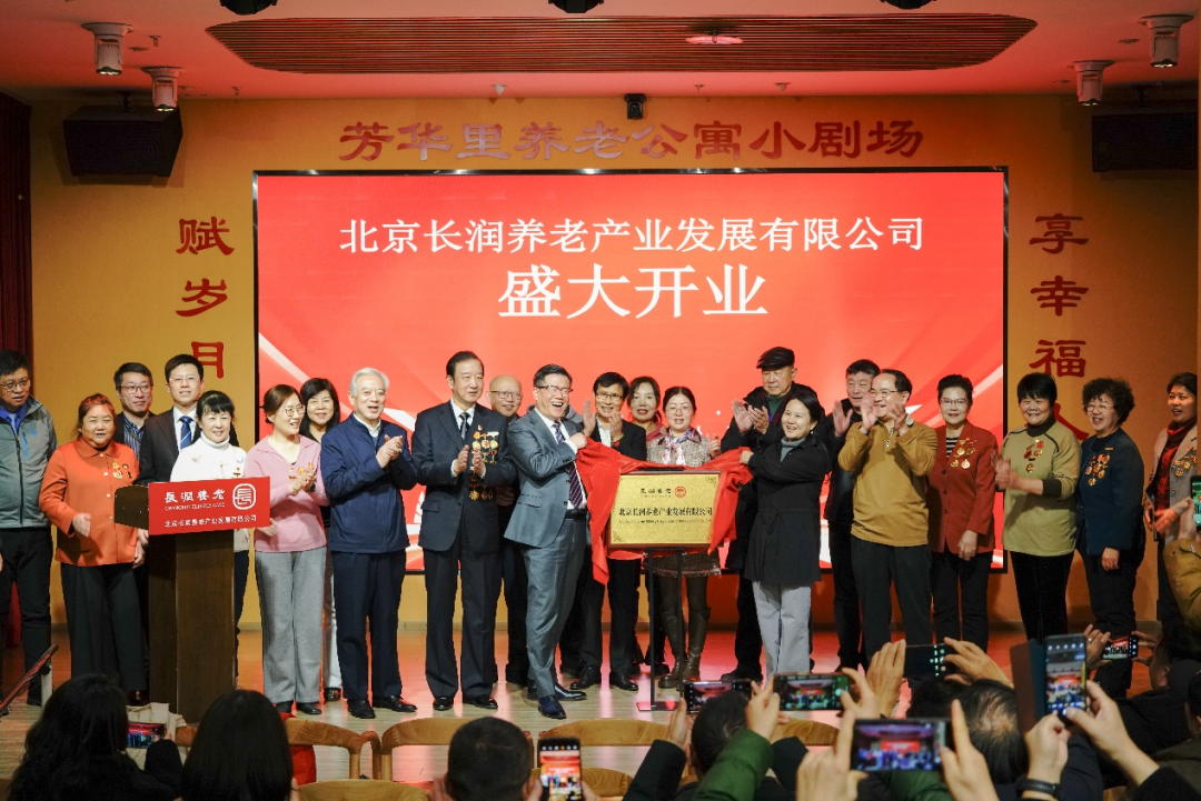 在北京协和医院马方教授、马水清教授,医院领导,北京阜外医院李响教授,北京天坛医院李振水教授,中国科学院王加义教授,中国流通行业政研会红色文化分会胡建民名誉会长带领的全国劳动模范团,中国人民大学商学院MBA的靳老师和同学方玲、王晓岐等重要嘉宾的共同参与下,以及现场全体嘉宾瞩目与见证下,牌匾红绸缓缓落下,“北京长润养老产业发展有限公司”正式揭牌成立!