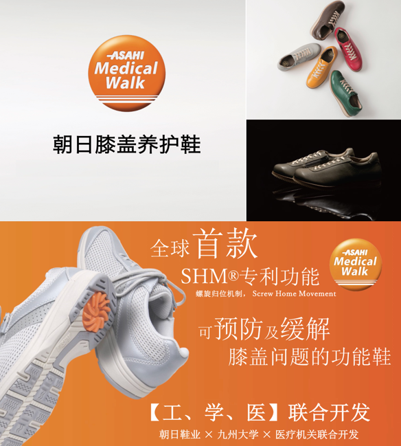 ASAHI Medical Walk(AMW)系列作为膝盖养护鞋,融合日本百年制鞋工艺与现代生物力学研究成果,尤其针对需要保护膝盖的老年群体,装载有可预防膝关节疾患的“SHM®机能”。这一功能由朝日鞋业联合九州大学、医疗机关通过“产学医”合力研发而成,能有效解决老年群体的膝护行走需求,“SHM®”功能具备三大优势。