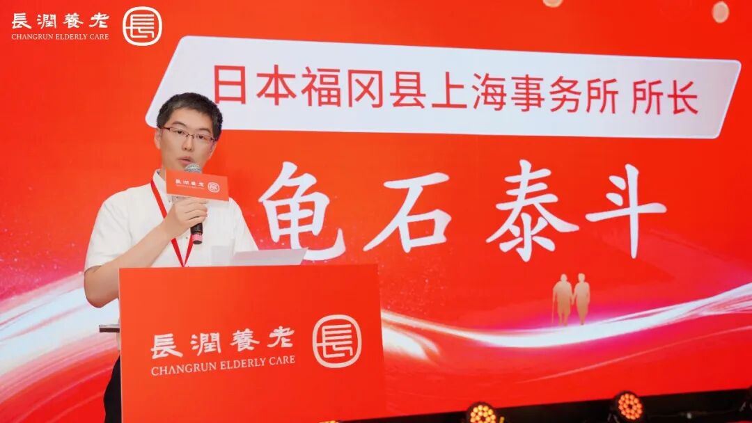 他回溯个人深耕养老领域的奋斗历程与实践成果,讲述长润养老从萌芽到成长的发展之路,阐述“大爱长生,福润你我”的初心使命。未来,长润将持续践行使人类善始善终的价值理念,书写新时代养老事业的温暖答卷。随后,进入嘉宾发言环节,日本中国友好协会福冈县会长、全国副会长森山沾一,原新华社中国新闻发展公司总经理周顺敖,日本福冈县上海事务所所长龟石泰斗,日本株式会社Caring代表取缔役中尾光明,原北京协和医院营养科主任马方教授等相关领域嘉宾、资深健康领域专家及企业代表,先后从日中养老合作历史、国家老龄化战略、日本介护服务体系、中国中老年群体需求、日本适老化产品应用等不同维度分享见解,为养老产业发展提供多元思路。