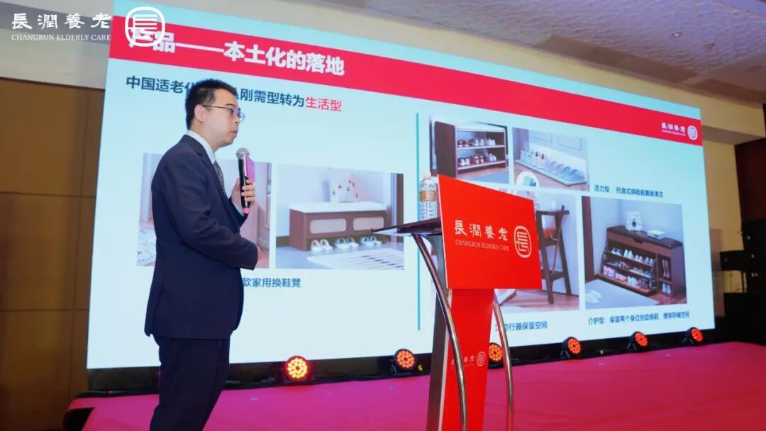 长润养老设计部设计总监龚熙程阐述《产品+环境+服务:日本居家养老的本土化解决方案》,展示日本适老化改造案例及长润结合中国家庭特点的模块化改造方案。
