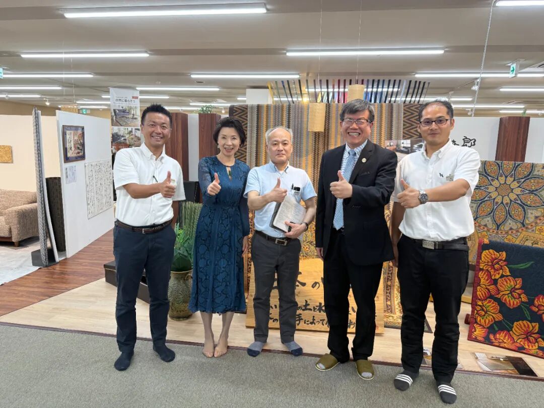 左起:日本池彦代表取缔役猪口耕成、日本长润董事长助理张林媛、池彦執行役員専務兼商品部統括中川勝巳、日本长润董事长庄文德、池彦商品部第十八事業部長(薄掛布団)宋清紅