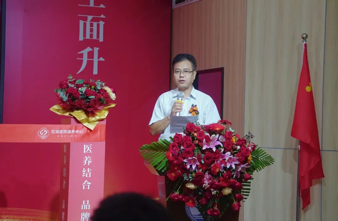 ▲院长刘嘉涪讲话启幕仪式上,花滩医院院长刘嘉涪发表致辞,现场阐述了医院推动医养融合的初心与规划。他深情回顾了康养中心从理念萌芽到全面升级的两年历程,明确指出此次升级并非简单的床位扩充与设备更新,而是从“医疗支撑”到“医养融合”的一次系统性跨越。刘院强调:“我们不仅要让长者‘老有所医’,更要让他们‘老有尊严、老有欢乐’。
