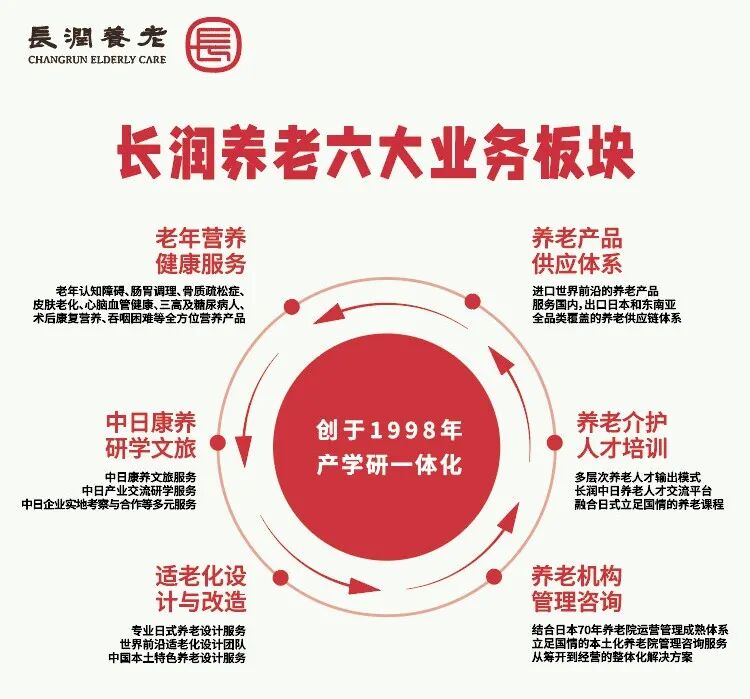 上海长润自 1998 年成立以来,始终以 "整合全球优质资源,赋能中国健康产业" 为使命,历经 27 年发展已构建起覆盖养老产品研发、服务运营、人才培养、供应链建设的全产业链体系。依托 30 余年对日合作的深厚积淀,在日本布局养老事业超 9 年,为当地 1300 余家养老院及护理医院提供产品与服务,成功引进近数十个日本尖端适老化品牌,涵盖中京医药品、朝日护理鞋、福乐慈护理床、Caring 拐杖、池彦灯芯草、大川贞刈家具、PRIMO听六、罗曼司小杉等核心产品,并自主研发润长青中老年营养系列、爱宝全龄营养系列等特色产品。