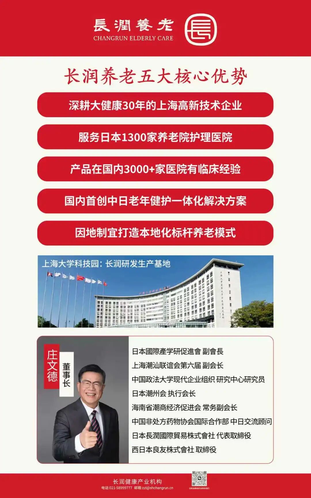 长润养老庄文德董事长重点分享了创办企业的初心与未来的宏伟愿景,他深情回溯自己的企业家生涯和品牌近30年的发展历程:从职业药剂师出身,到涉足进口业务,再到创立中国汕头市第一家网吧,成立香港长润洋行,进入医药、互联网、房地产等领域,直至1998年成立上海长润,开创中国的乳糖酶品类(被业内誉为“中国乳糖酶之父”),再到后来深耕日本养老产业9年、服务1300家日本养老机构与护理医院,并率先将日本先进养老产品与服务体系高质量引入中国市场。