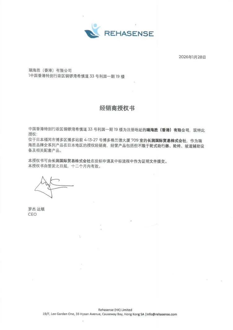 近日,日本长润国际贸易株式会社正式与源自丹麦的全球高端医疗器械品牌REHASENSE(瑞海胜)达成深度合作。作为移动助行领域的领军者,瑞海胜系列高品质助行产品已正式进入长润国际贸易供应体系,旨在通过顶尖的工业设计与康复工程技术,为日本长辈消除出行障碍,重拾乐享自由的生活方式 。